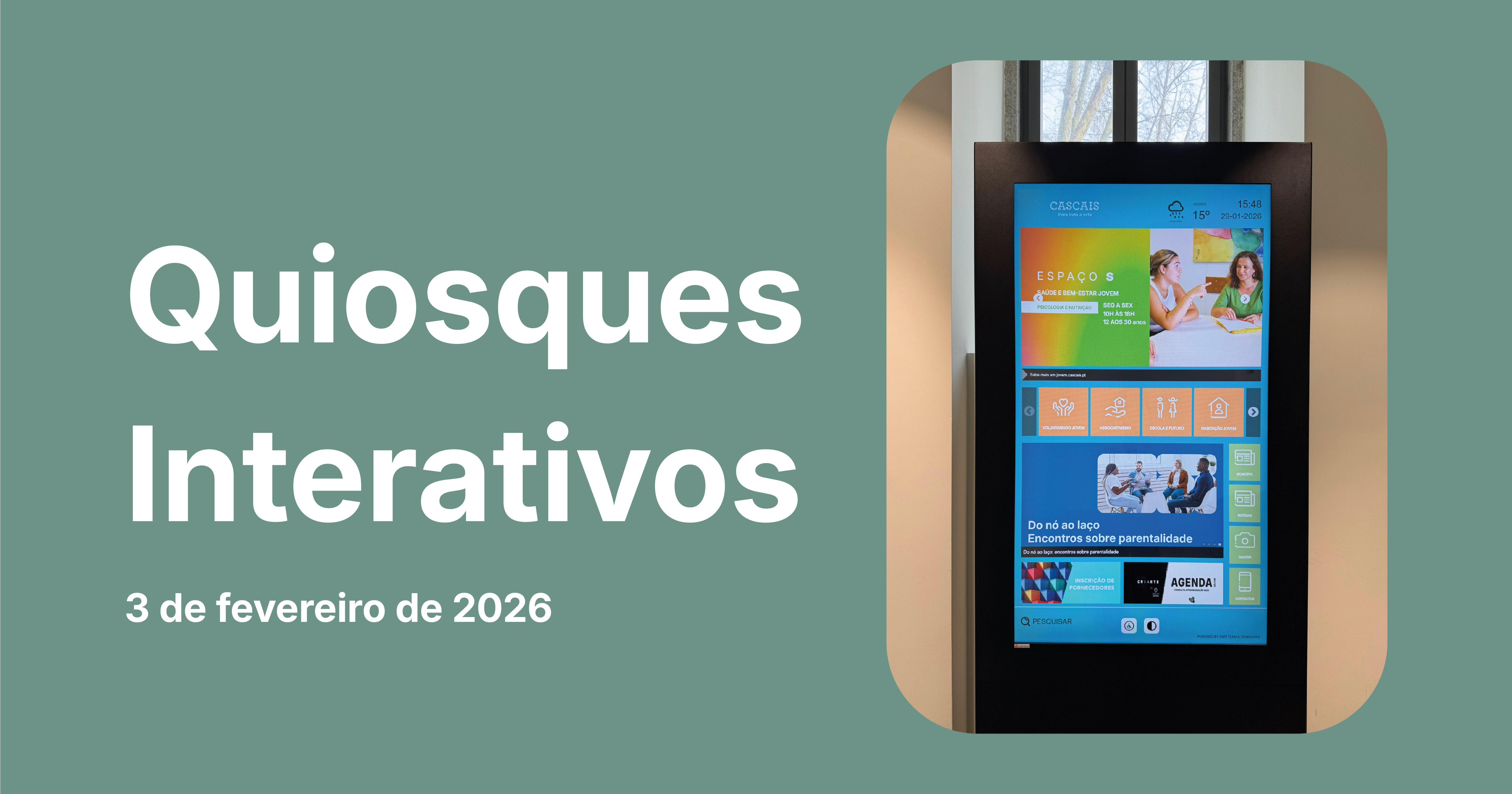 O concelho de Cascais vai passar a contar com cinco quiosques interativos, um novo espaço inovador de acesso à informação especialmente dirigido aos jovens. A inauguração terá lugar no dia 3 de fevereiro, terça feira, em cinco escolas do concelho.